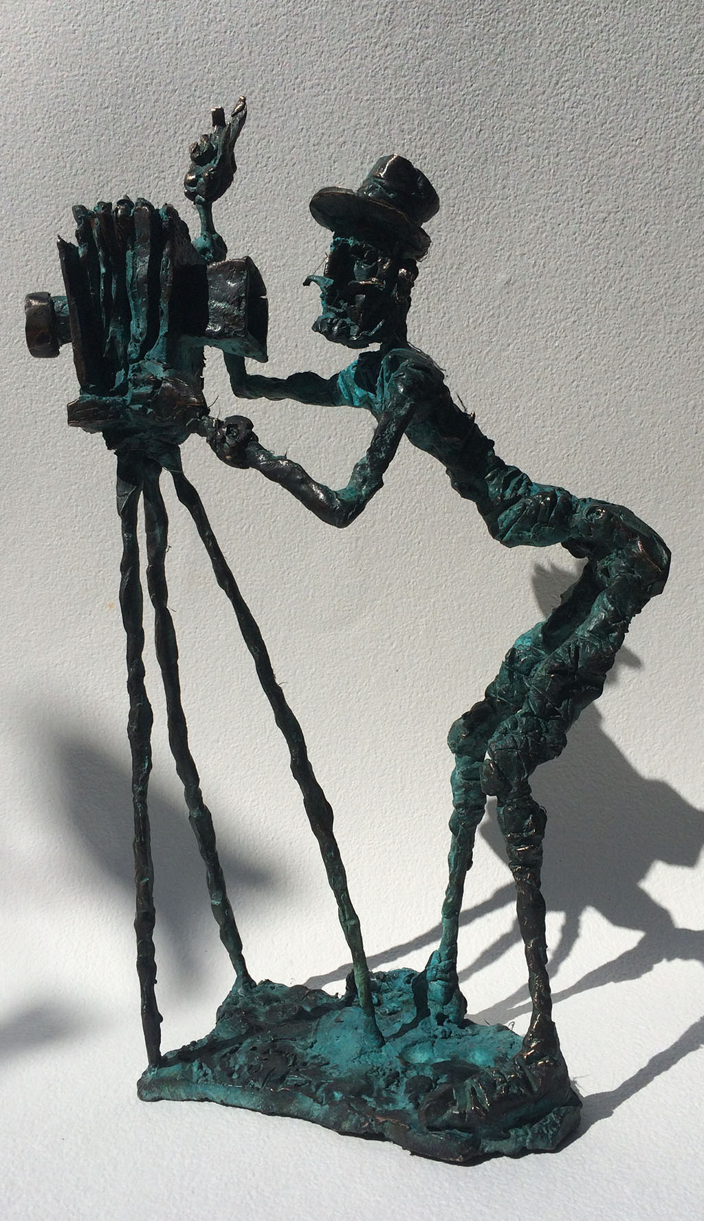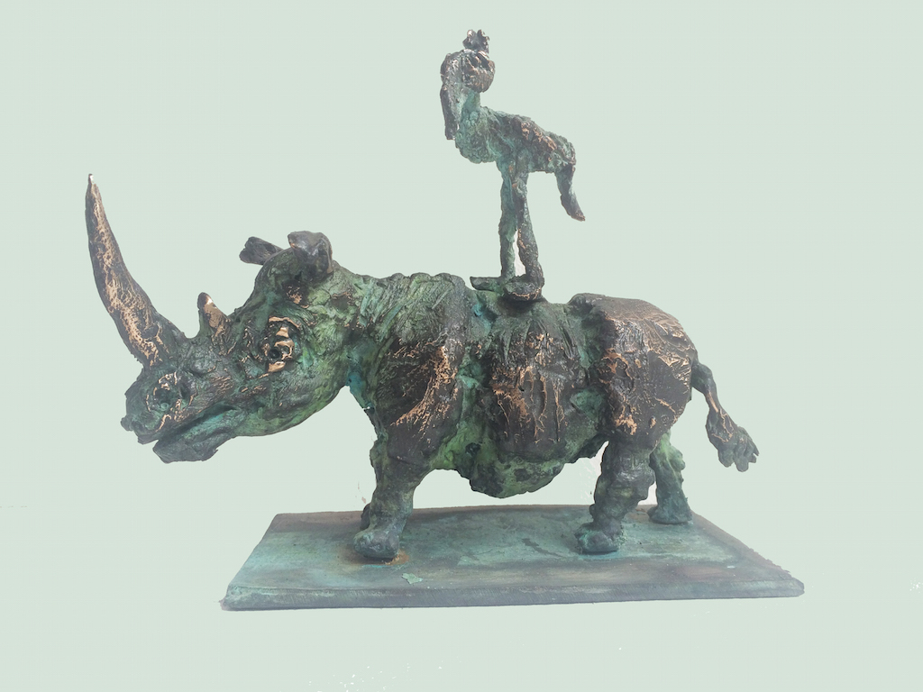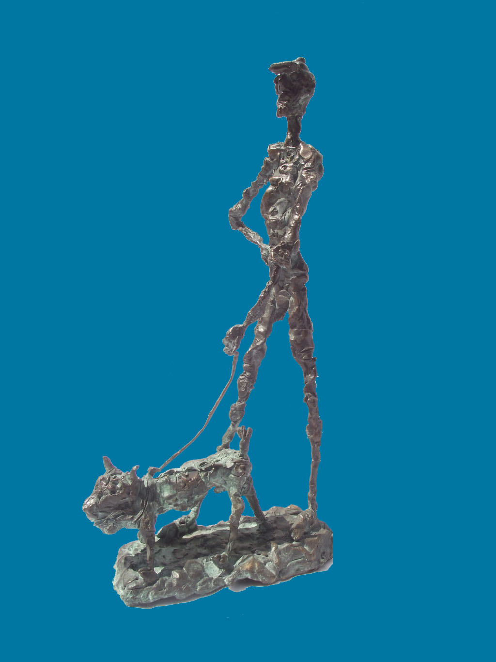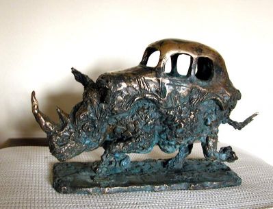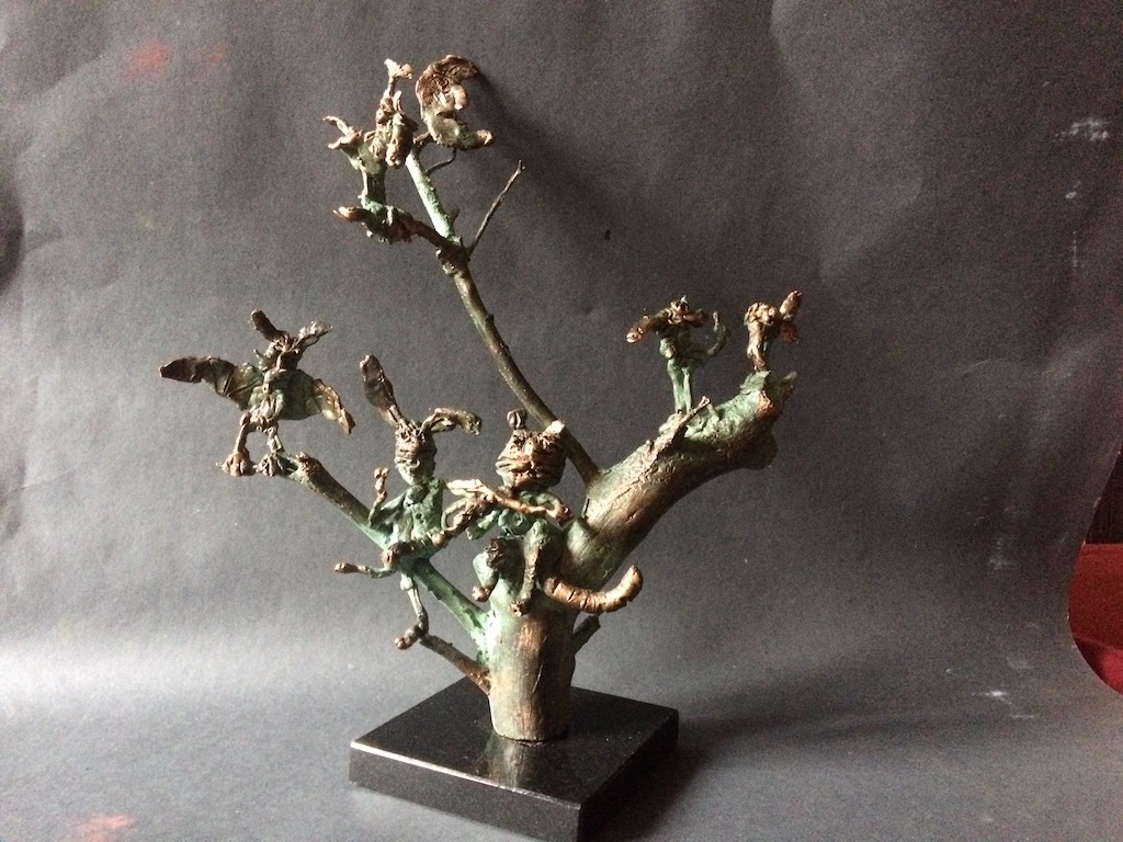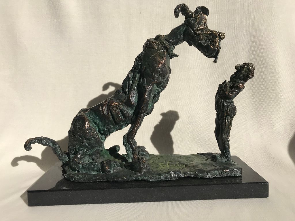 The caricature figures guard their seriousness and sublimity with fine simplicity. They are the players in the whirling fictive drama, which is brought to life by the bronze sculptures. The various, odd forms, devoid of all conformity, are rich and inventively shot through with contour effects, the scabrous surfaces inducing sculptures saturated with anxiety, tension and excitement.