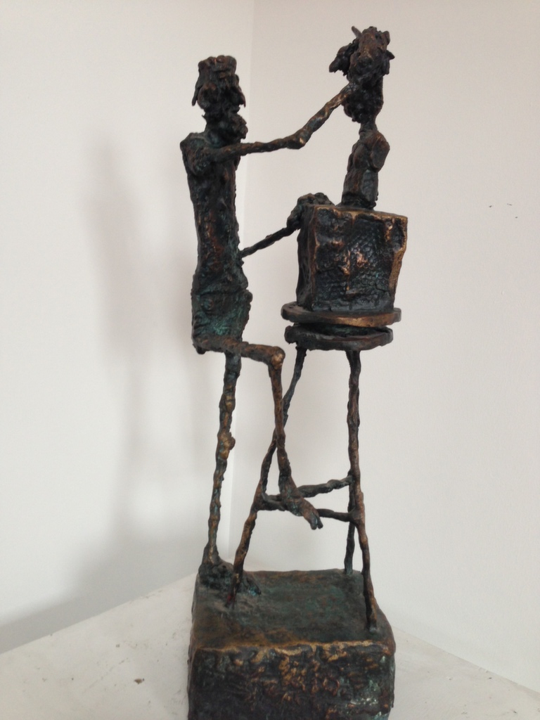 The painter’s activity is closely connected to his sculptural activity - it seems as if the main characters from Ernő Tóth paintings sprang to life in his sculptures. Two approaches to the same concept the same artistic view: the same grotesque-ironical tone here and there but the stresses of course are different in paintings and sculptures.
